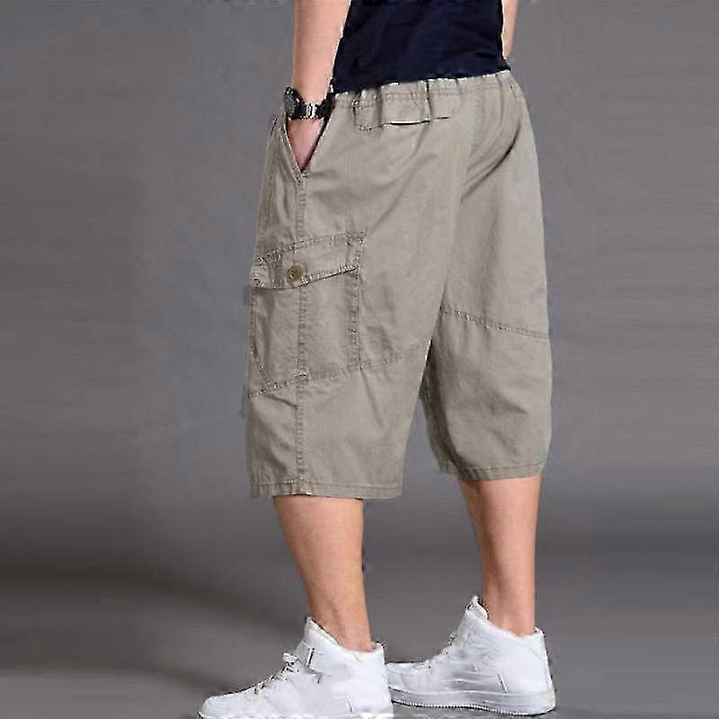 Men's Cotton Breathable Summer Sports Shorts with Multiple Pockets, Large Size Beach Casual Pants for Outdoor Activities