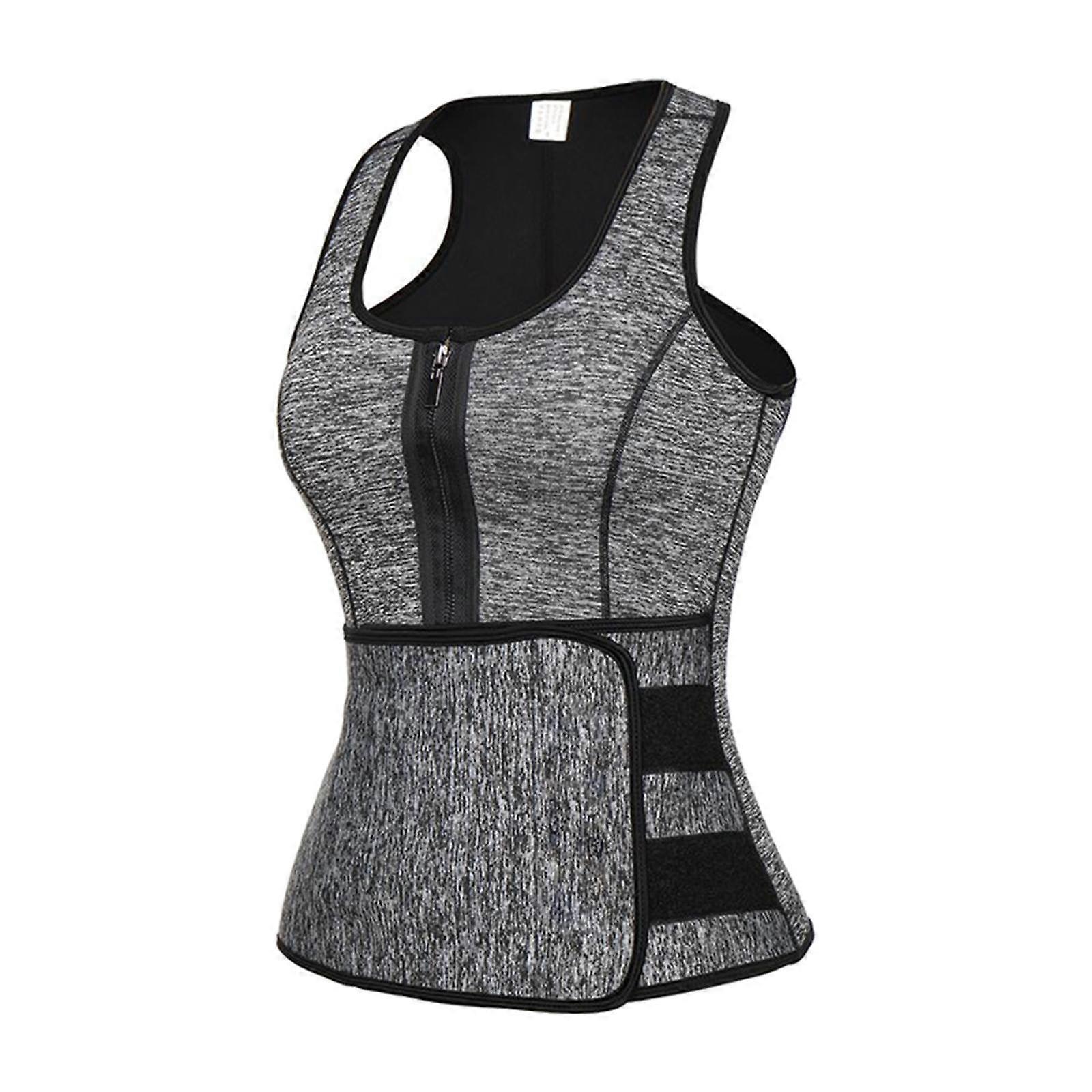 Men Sauna Vest Waist Trainer Neoprene Sweat Tank Top Zipper Tummy Gray M