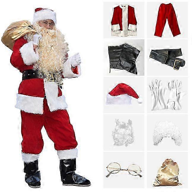 Mens Santa Costume Set Christmas 10pcs Deluxe Velvet Adult Santa Cl...