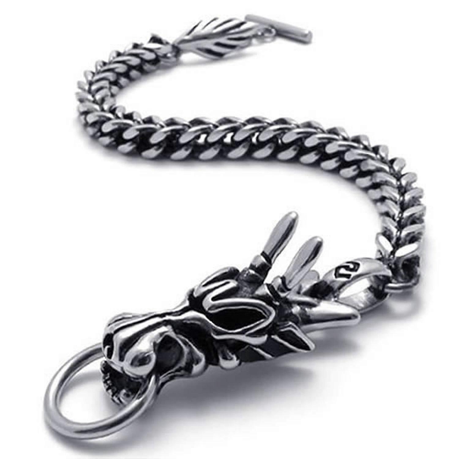 Men's Jewelry Bracelet Stainless Steel Dragon Biker Black Silver