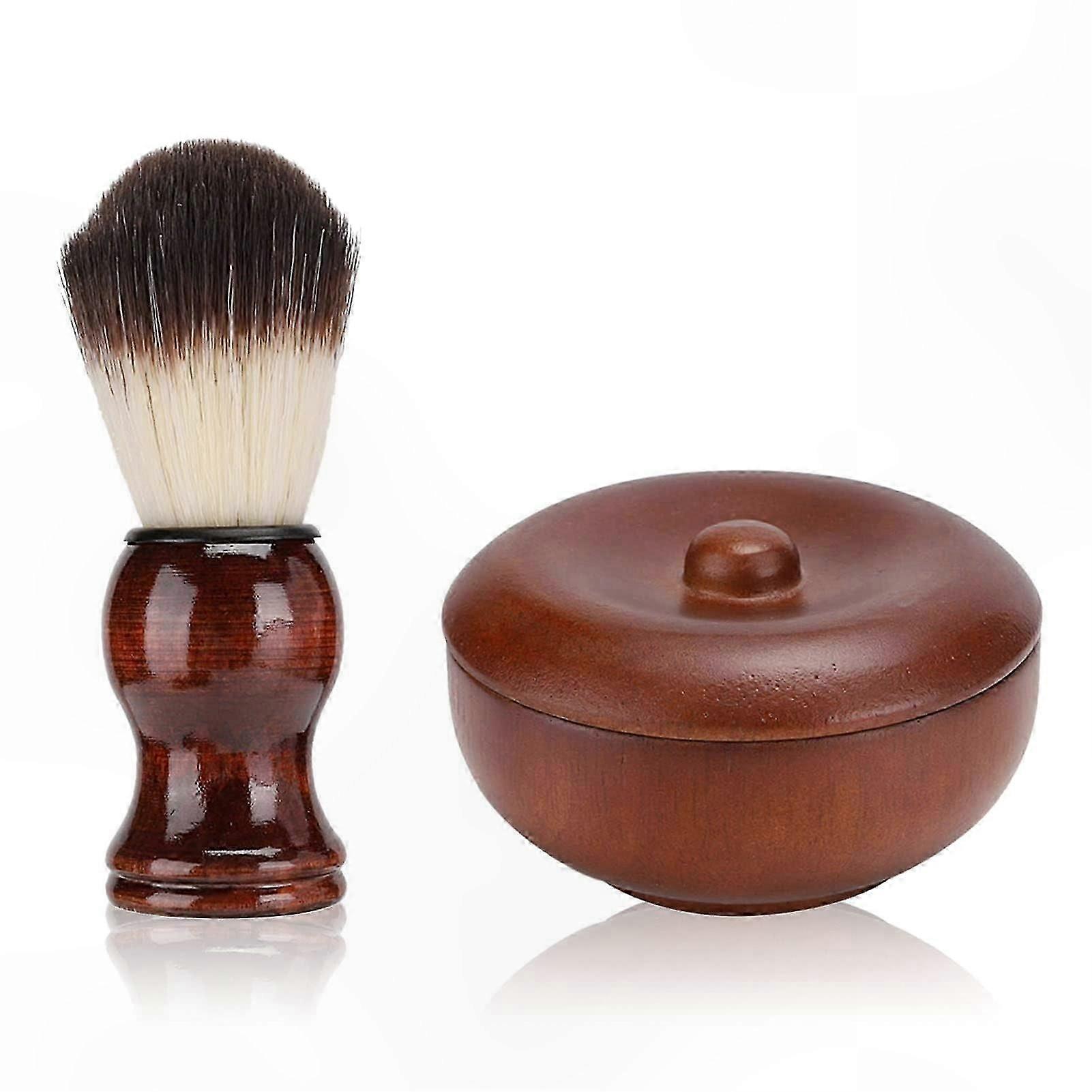 Men's Shaving Kit with Wooden Bowl and Brushes, 2-Piece Beard Care Set for Grooming Tools