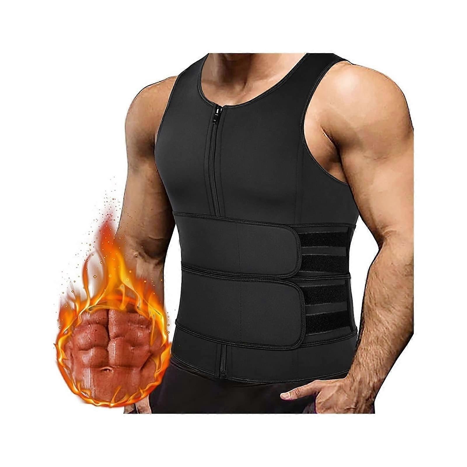 Men's sweat vest, Workout waist trainer, Sauna suit, Shirt for men, Heatstoring compression tank top (XL) black