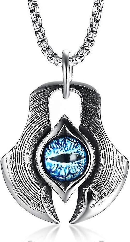 Men's Stainless Steel Greek Blue Dragon Evil Eye Axe Casting Dog Tag Pendant Amulet