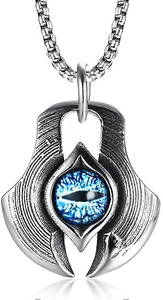 Men's Stainless Steel Greek Blue Dragon Evil Eye Axe Casting Dog Tag Pendant Amulet