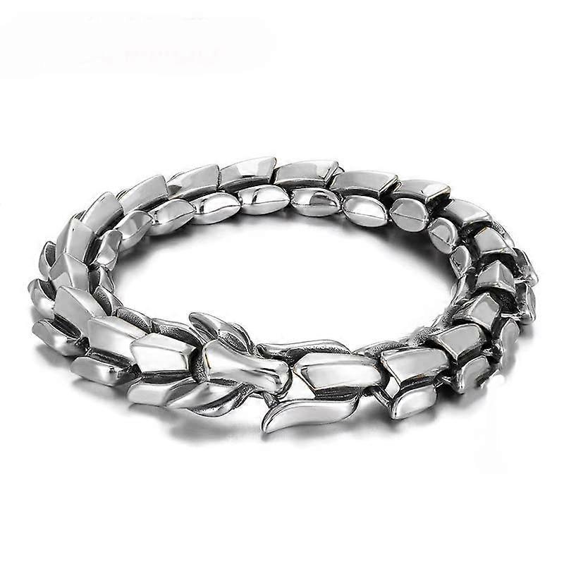 Mens Stainless Steel Punk 14mm 79 Inches Dragon Head Bracelet Unique Dragon Design Link