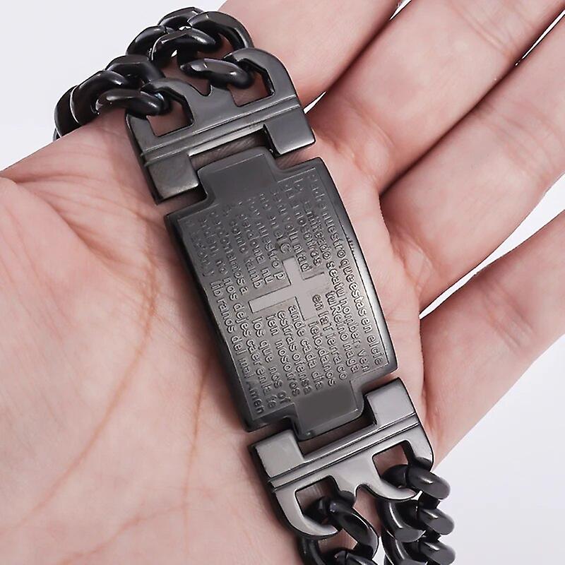 Mens Stainless Steel Bracelet Gold Color Cuban Chain Jesus Cross Bracelet Man High Quality Jewelry Male Birthday Gift