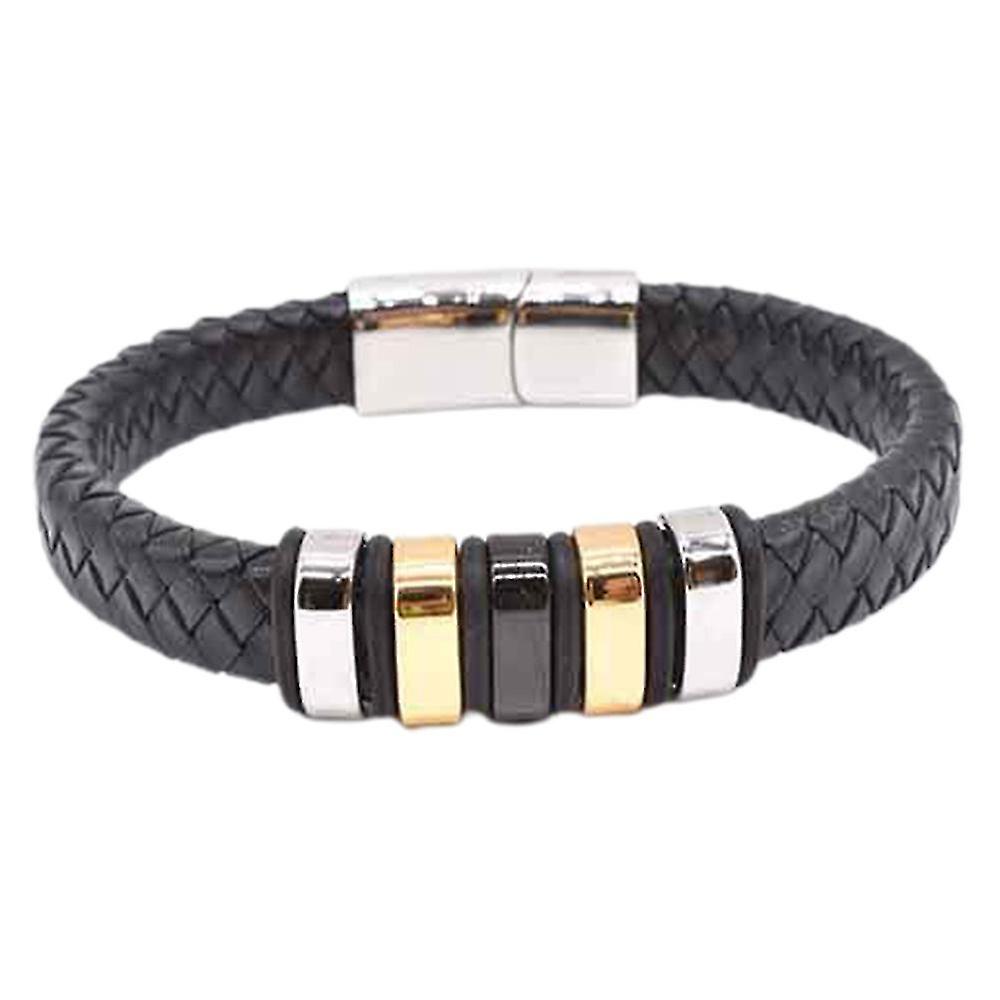 Men's Stainless Steel Leather Braided Bracelet Wristband Birthday Gift
