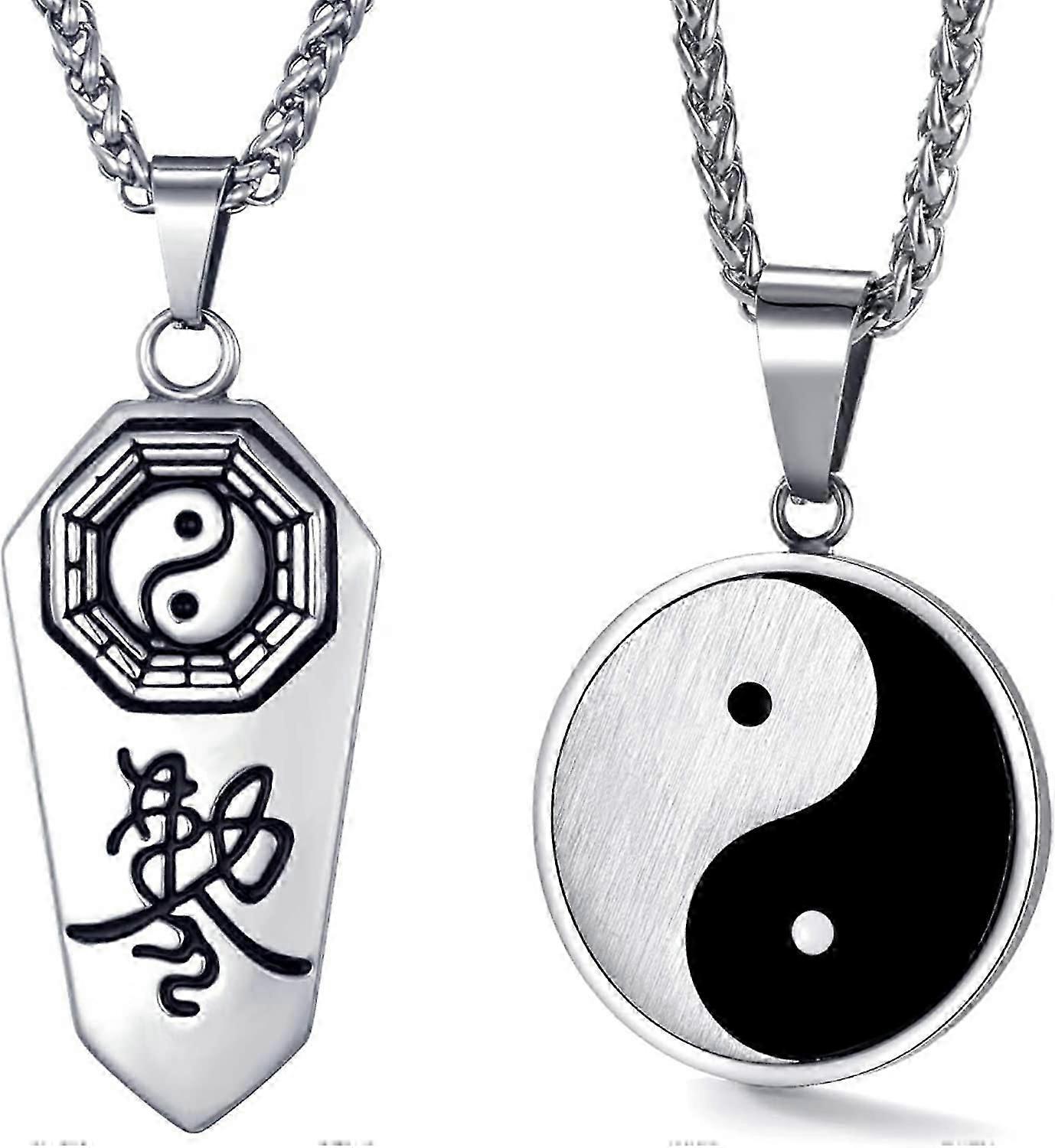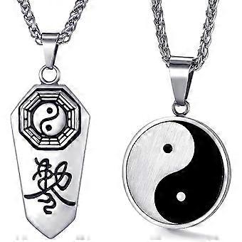 Men's Stainless Steel Yin Yang Taichi Pendant Necklace Bundle