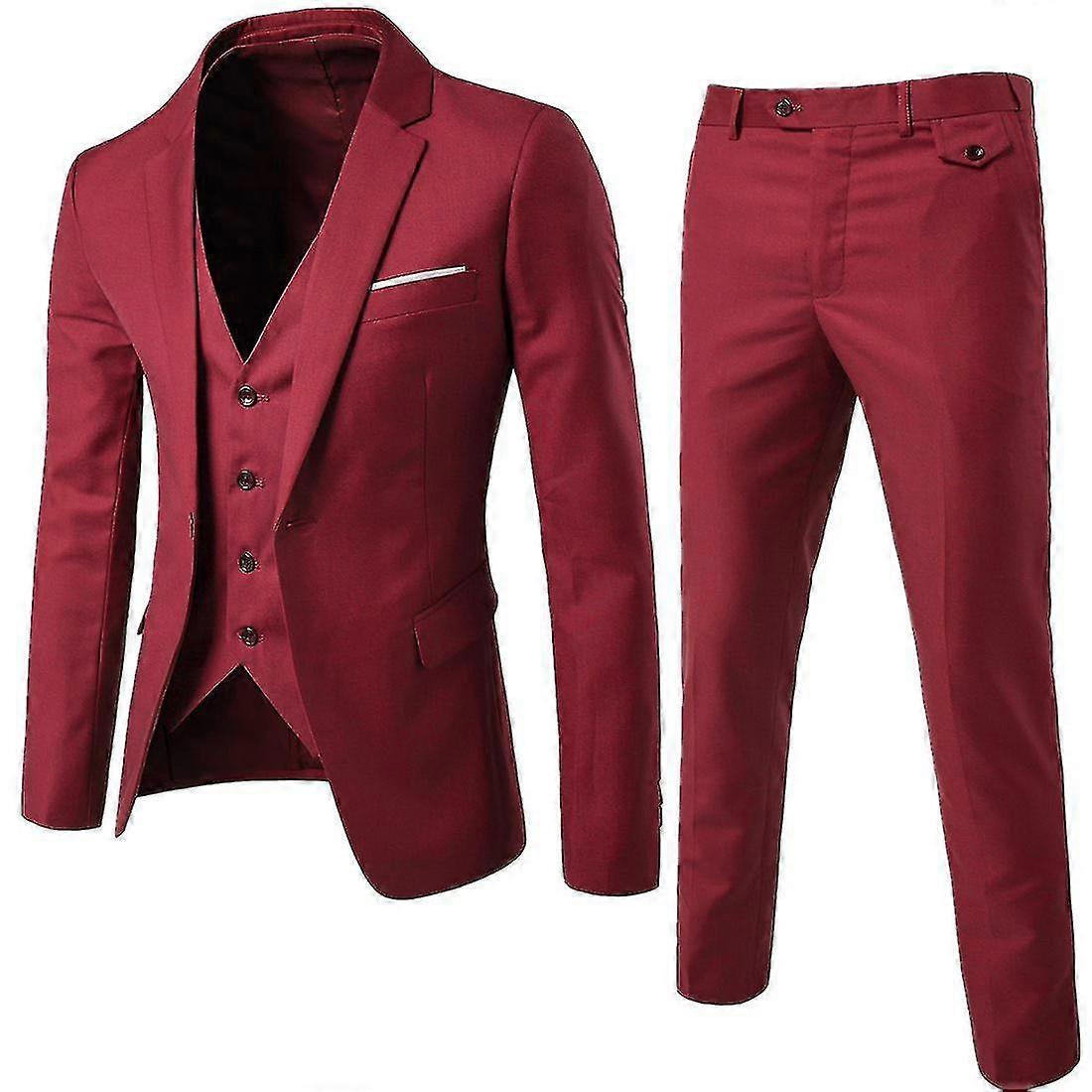 Mens Suit Business Casual 3-pieces Suit Blazer Pants Vest Wedding Party Suit