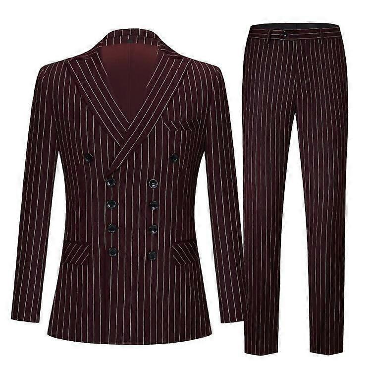 Men's Double Breasted Pinstripe 2 Piece Suit Slim Fit