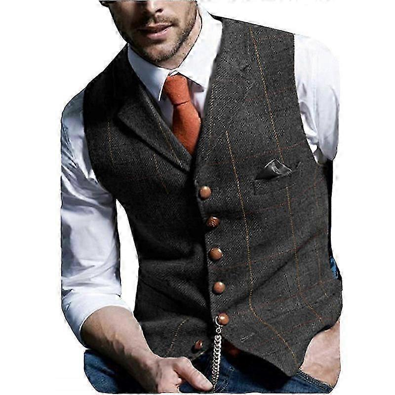 Men's Plaid Groom Vests Tweed Business Suit Wedding Tuxedo Waistcoat BZSM