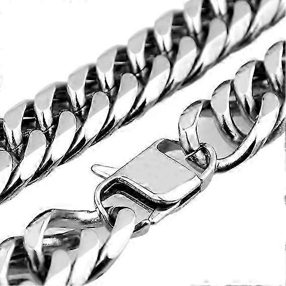 This men's titanium steel double buckle six facet polished necklace is a statement piece that exudes strength and sophistication. Crafted from high-quality titanium steel, it features a thick Cuban link chain design with a sleek, polished finish. Available in various widths8mm, 10mm, 12mm, and 14mmthe necklace offers versatility to suit different styles and preferences. The secure double buckle closure ensures durability and comfort, making it perfect for everyday wear or special occasions. Its robust construction and elegant appearance make it an ideal accessory for those who appreciate timeless craftsmanship and modern fashion. Elevate your look with this versatile and stylish necklace.