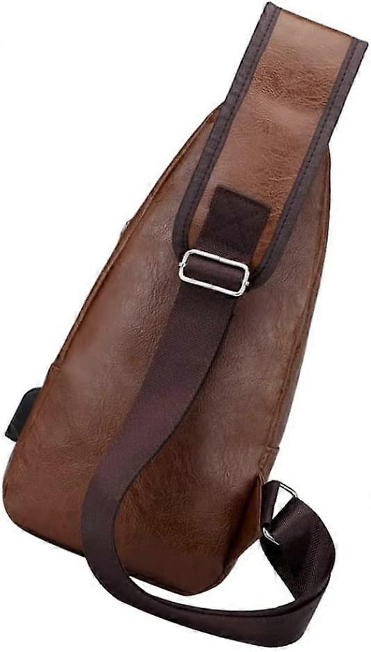 Men Bag Sling Bag Chest Bag with USB Charging Port Men Waterproof PU Leather Bag Men Sling Bag (brown ) (1pc)