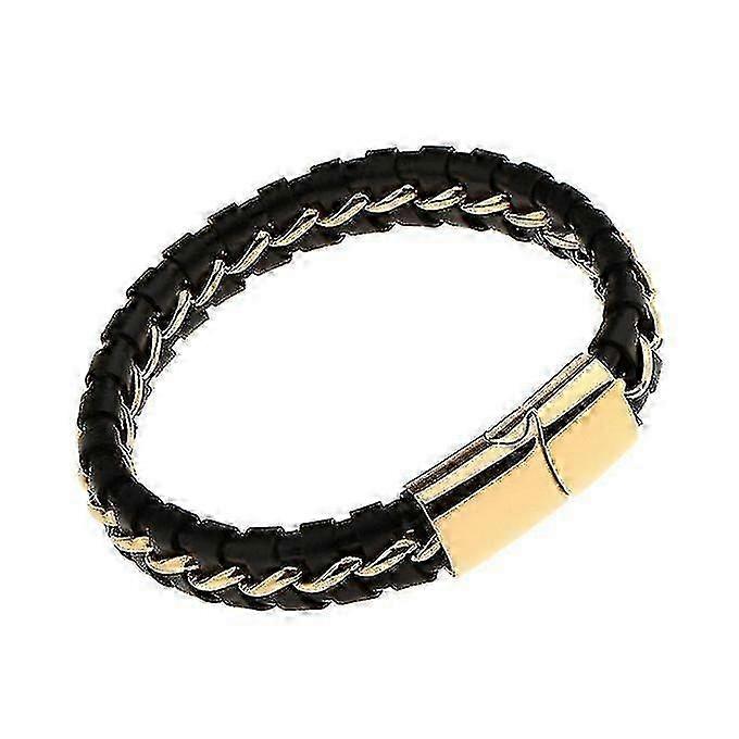 Mens Punk Leather Mix Color Bracelet With Gold Stainless Steel Clasp
