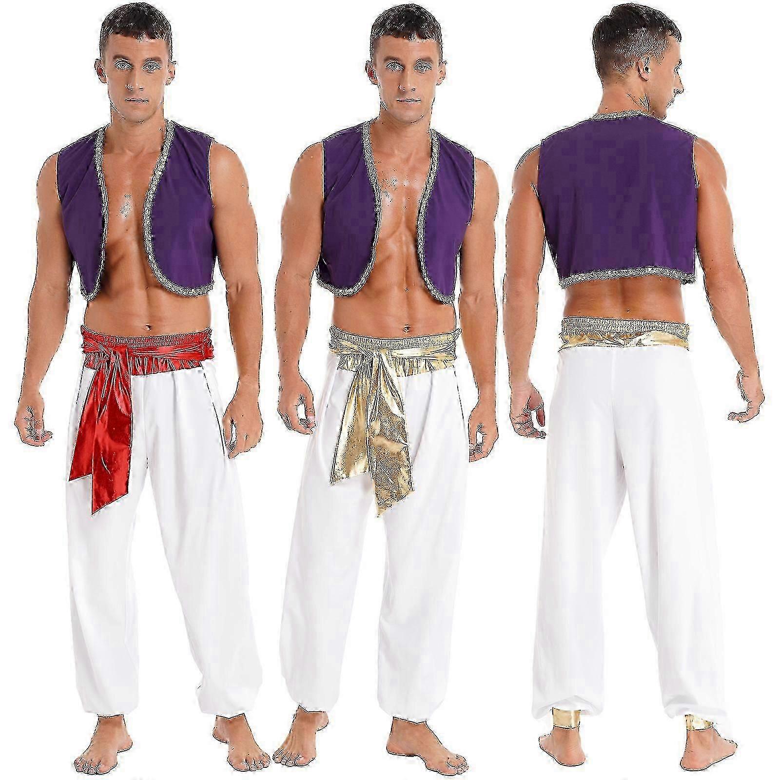 Mens Halloween Costume Mythical Prince Aladin Carnival Carnival Cosplay Party Outfit Sequin Trim Waistcoat With Belted Pants