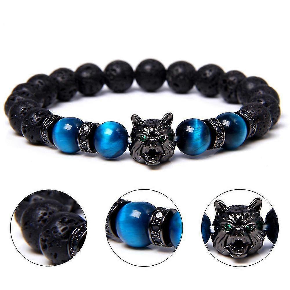 Men's Bead Bracelet Black Wolf Head Energy Vintage Bracelet