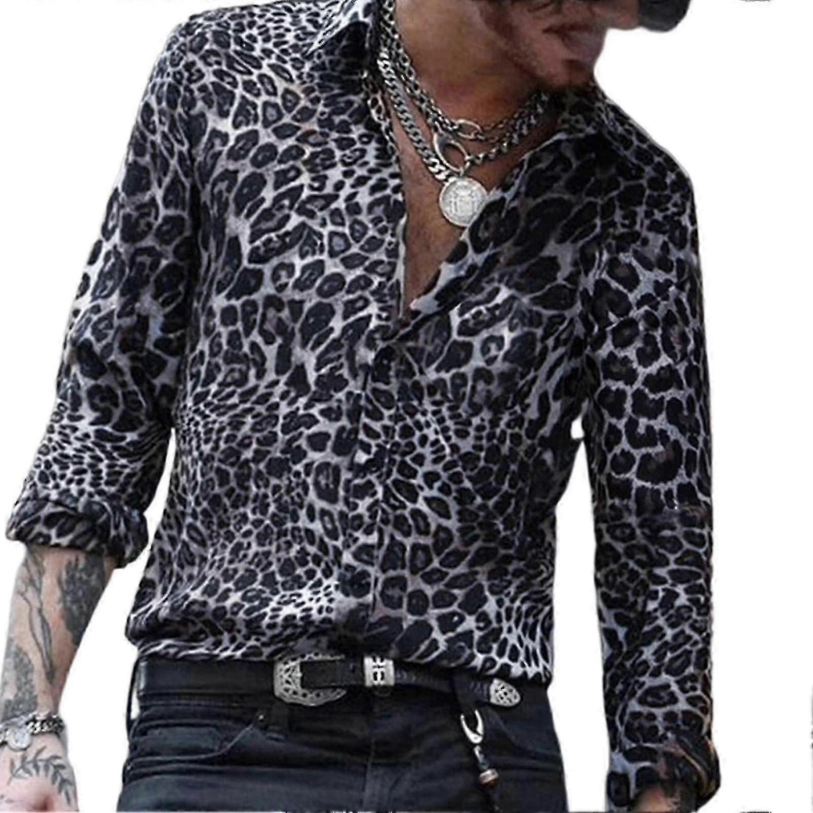 Men Leopards Long Sleeve Lapel-shirt Personality Streetwear All-match Shirts For Proms Club-lian