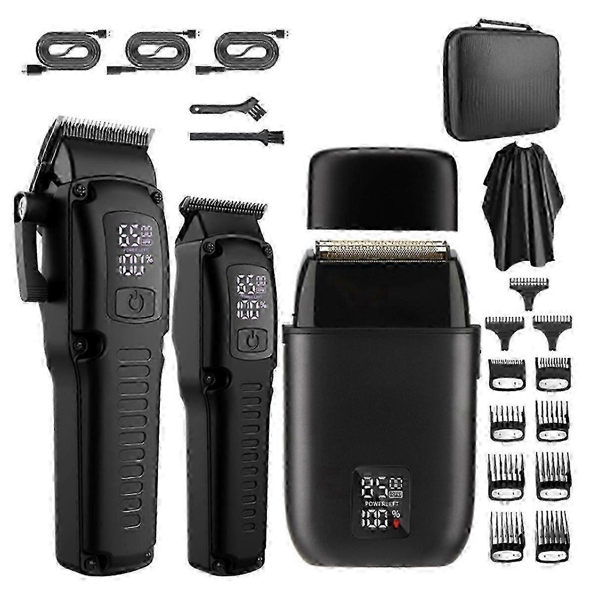 Men'S Professional Hair Clipper, 3 in 1 Hair Clipper Beard Trimmer and Electric Shaver Set with LED Display--Black
