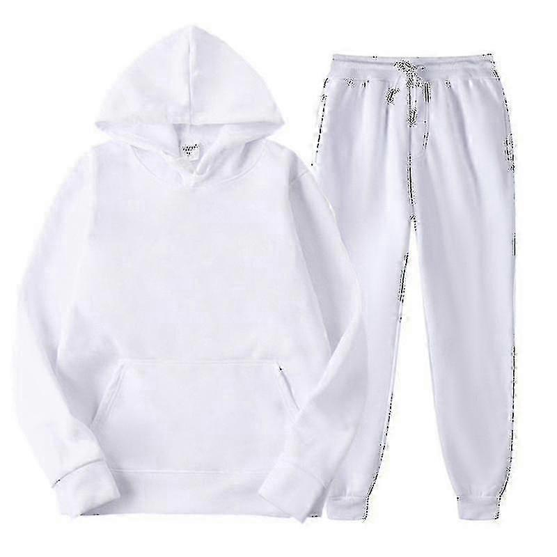 Men's Fleece Hooded Tracksuit Set Solid Color Sports Jogger Sweatsuit