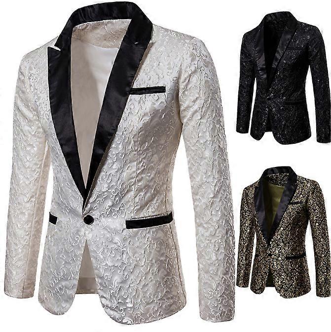 Elegant Jacquard Fabric: This blazer features a luxurious jacquard design, adding a sophisticated and fashionable touch to your formal look. Perfect for upscale events like weddings, dinners, and parties. Classic One-Button Closure: Designed with a sleek one-button closure, this blazer offers a modern yet timeless style, ideal for both formal and semi-formal occasions. Tailored Fit for a Sharp Look: The slim fit cut ensures a sharp and polished silhouette, giving you a confident and well-groomed appearance for any special occasion. Versatile for Formal Events: Whether you're attending a wedding, dinner, or party, this blazer is the perfect choice for making a stylish statement and standing out in any crowd. High-Quality Craftsmanship: Made with high-quality materials, this blazer ensures comfort, durability, and a polished finish, providing long-lasting wear for any formal gathering.