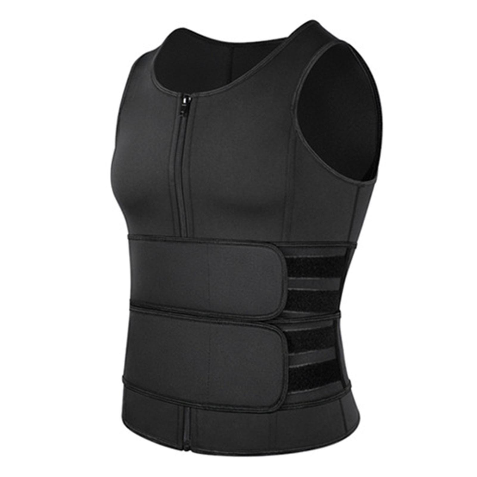 Men Body Shaping Waist Trainer Gym Fitness Soft Breathable Double Belt Sweat Slimming Sauna Vest Black L