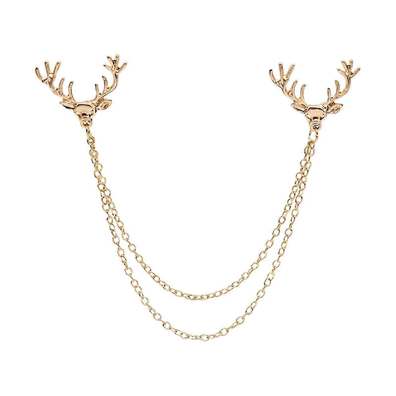 Men Lapel Pin Antler Decor Double Chains Anti-slip Dress-up Polished Suit Coat Collar Pin Coat Brooch Adult Clothes Hats Bags Jewelry Qinghai