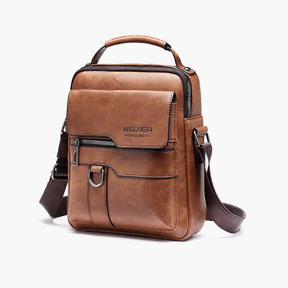 Features:1.Perfect for many occasions such as work, school, University, nights, out, etc. Both the bag and wallet are made from Leather.2.Inside the wallet there is a place for a photo, debit and credit card sizes items and a compartment for bank notes.3.Attached to the bag is an adjustable strap that allows the bag to be warn over the shoulder or cross body. The resulting bag and wallet are both tough, highly fashionable and perfect for everyday use.4.The bag is lined with polyester and has a main compartment and a mobile phone compartment.5.Material: The shoulder bag for men consists of high quality soft PU leather and polyester lining, embodying exquisite workmanship. PU leather is anti-scratch and waterproof, and makes the texture supple and sturdy. Specification:Type: Men Business BagColor: Black, Light Brown, Deep Brown (Optional)Material: High quality soft PU leather Net Weight: 0.41KGSize: Approx. 22x8x26CM Notes:1.The factor of light and screen setting may result in slight difference between the items color and color shown in the pictures. Thanks for your understanding!2.Please allow some size error due to manual measurement. Thanks for your understanding! Package Included:1 * Men's Shoulder Bag