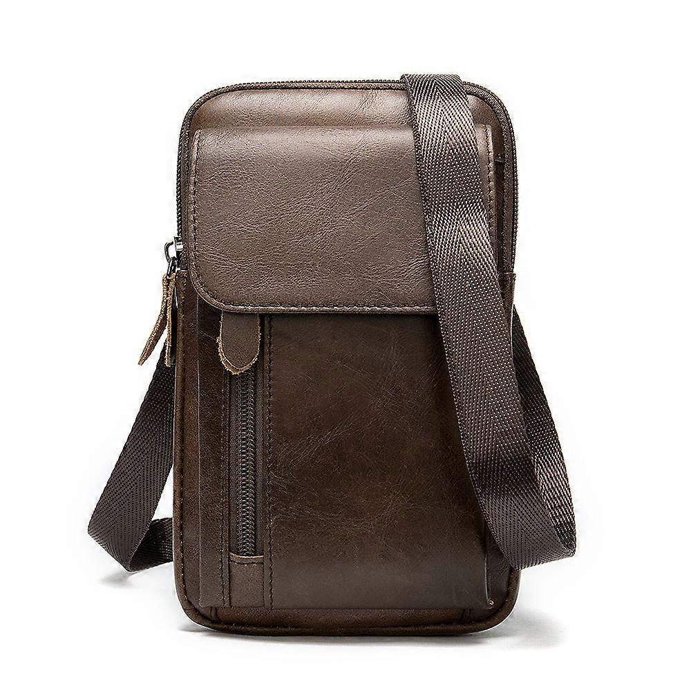 Men's Leather Cell Phone Waist Bag Crossbody Bag - Coffee