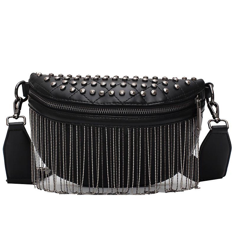 Men Women Fanny Pack Waist Bag Broadband Crossbody Texture Rivet Tassel Women's Chest
