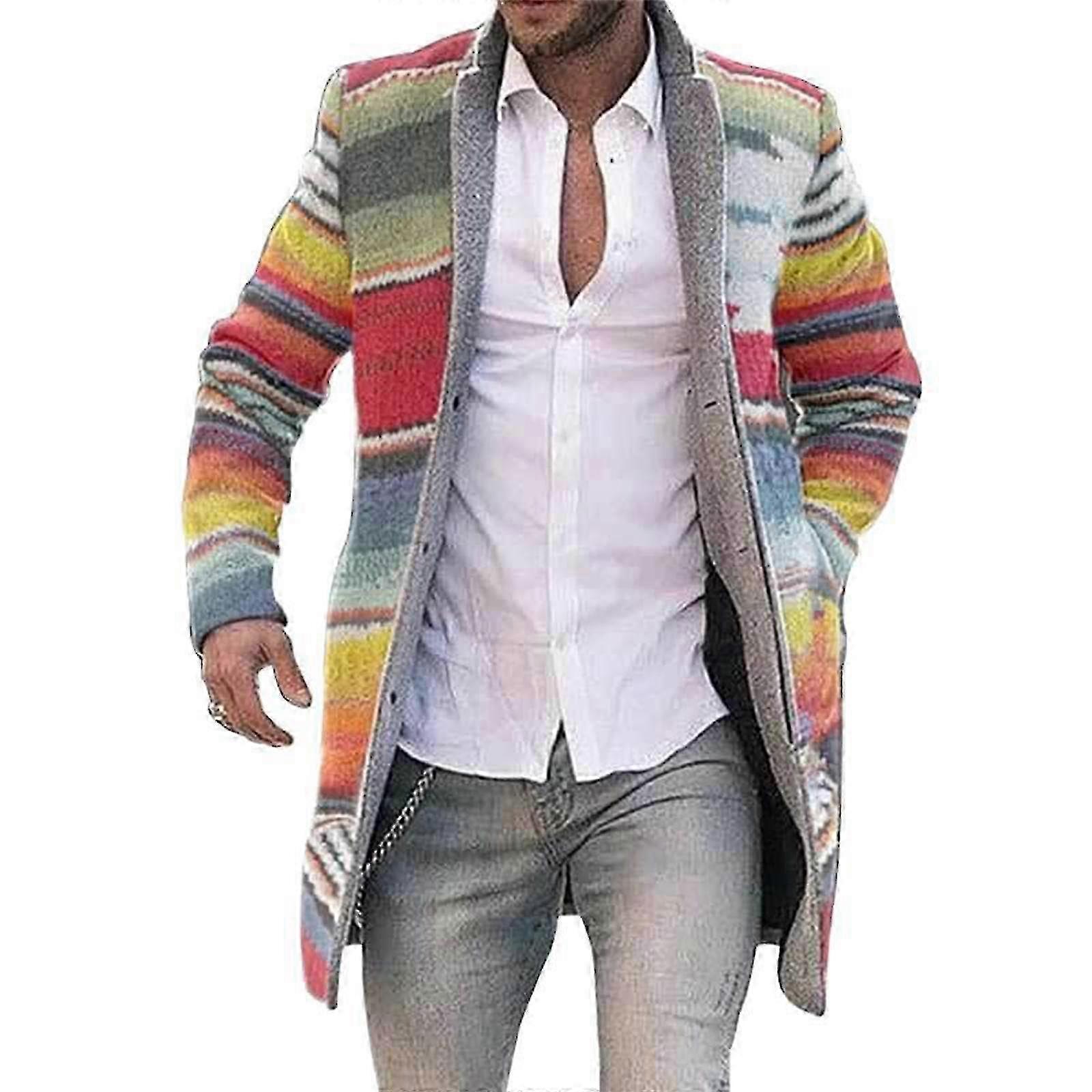 Men's Long Jackets Warm Winter Overcoat Cardigan Casual Trench Coat Striped Outwear