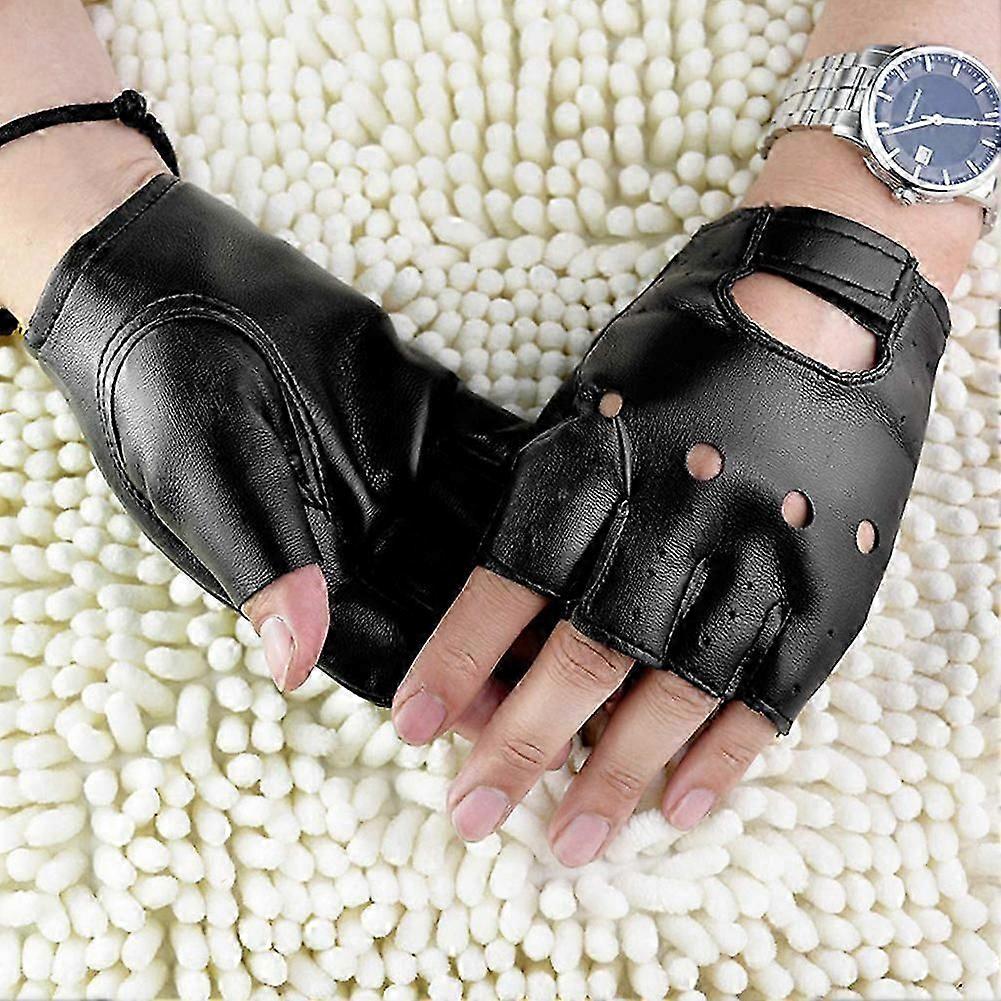 Men Artificial Leather Slip Resistant Half Finger Fingerless Gloves Hand Wrist Mittens E2U260