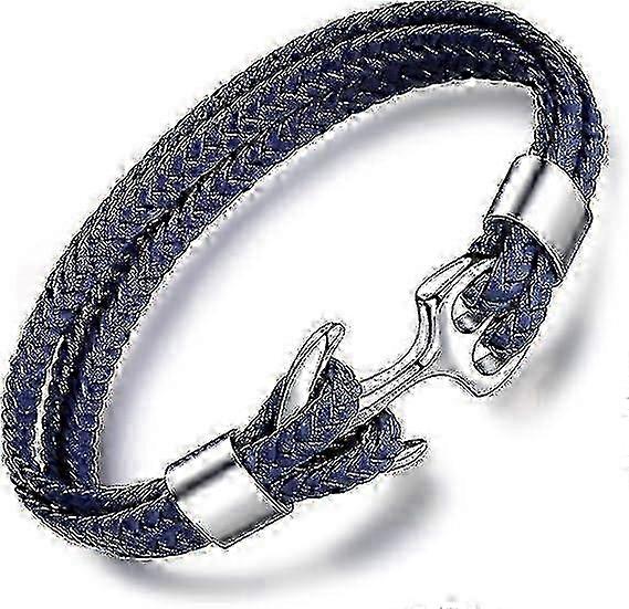Men's Genuine Leather Bracelet Titanium Clasp Anchor Bracelets 8.86"(22.5cm) with FREE Giftbox Giftcard