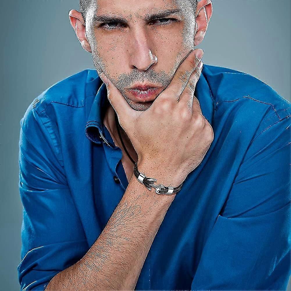 Men\'s Genuine Leather Bracelet Titanium Clasp Anchor Bracelets 8.86"(22.5cm)