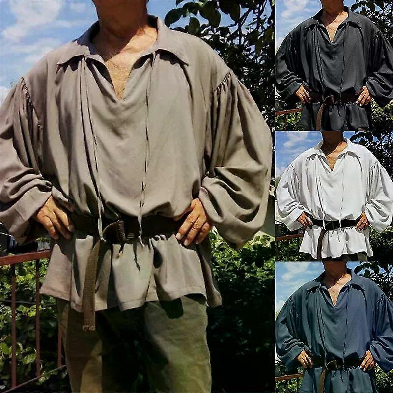 Mens Pirate Shirt LARP Hallween Medieval Renaissance Clothes Oversized Fluffy Sleeve Bandage Vintage Vampire Prince Costume