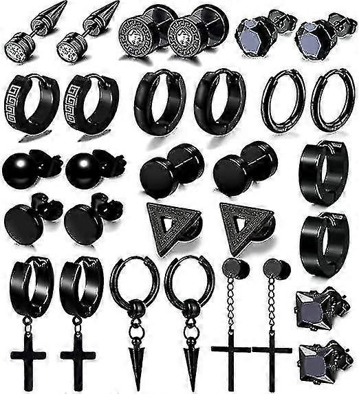 15 Pairs Earrings For Men, Black Stainless Steel Earrings Stud Kit For Men Women Fashion Piercing Jewelry Cross Dangle Hoop Earrings Set