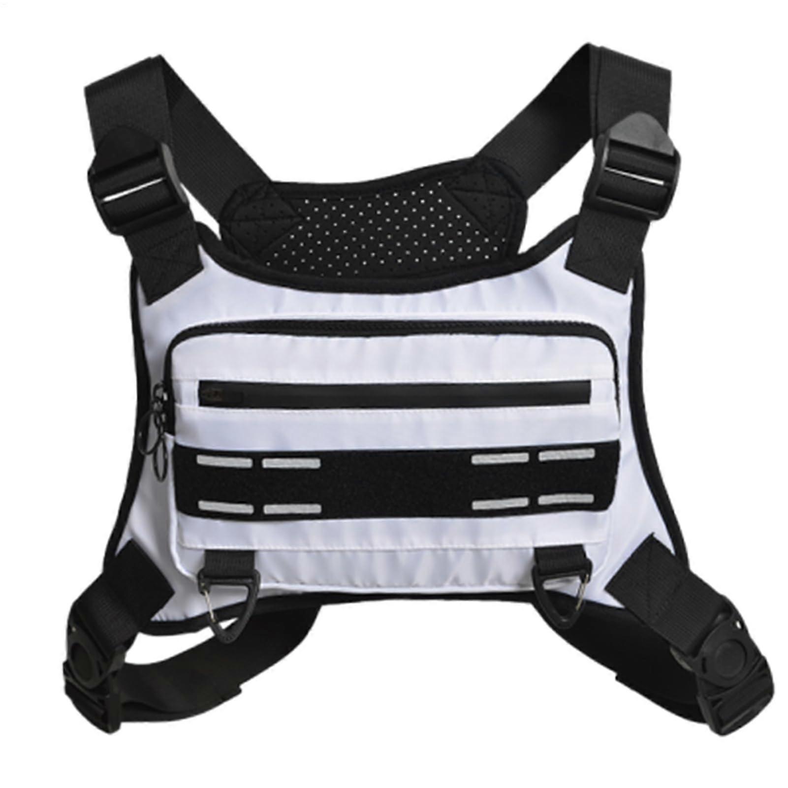 Men's chest pocket, adjustable running vest, breathable workout, lightweight phone holder sling, white