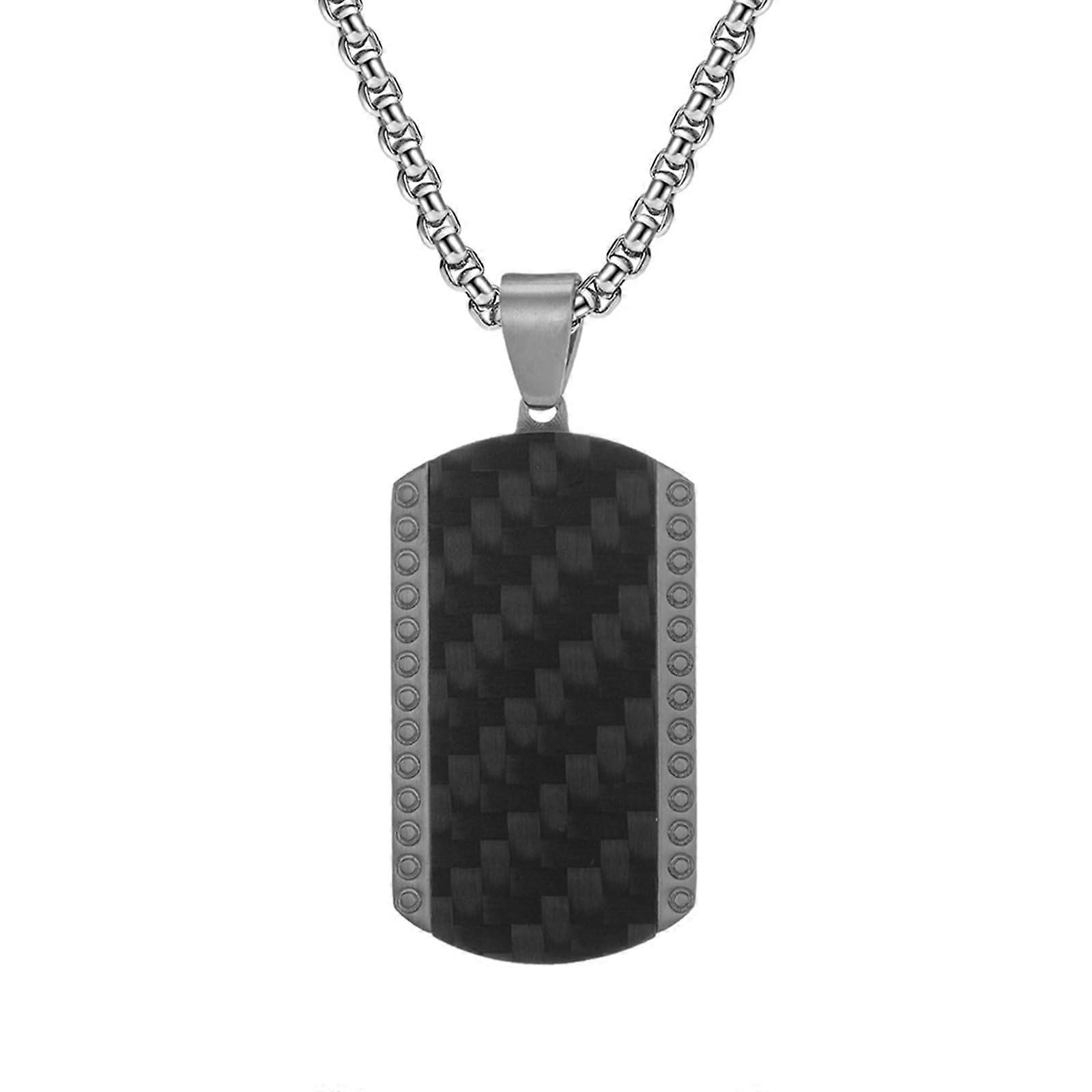 Men's Stainless Steel Carbon Fibre Dog Tag Pendant Necklace with Silver Gothic Rolo Chain for Casual Wear
