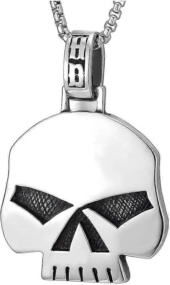 Men's Stainless Steel Punisher Skull Pendant Necklace with Black Enamel 30 in Wheat Chain Gothic