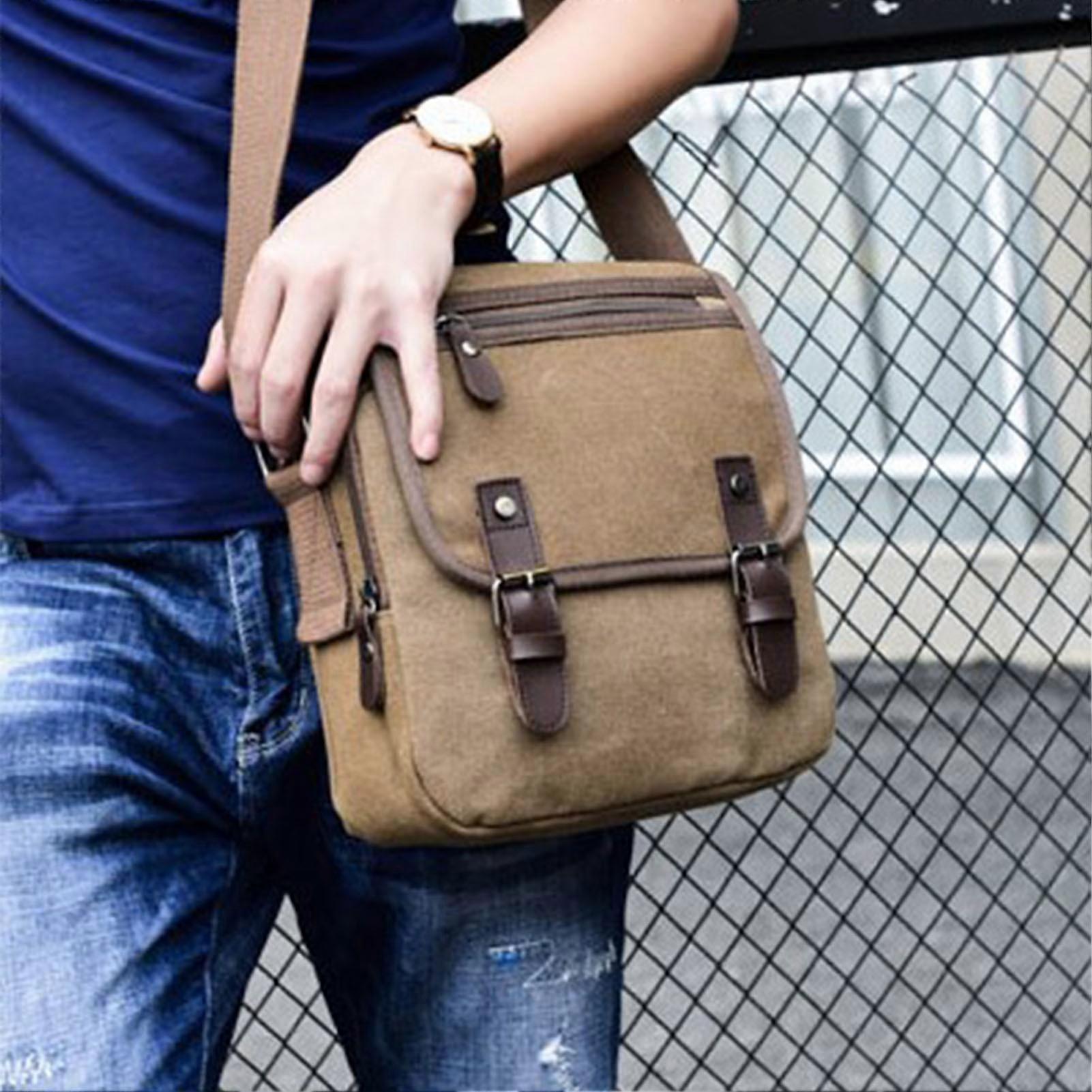 Men's Brown Canvas Shoulder Bag 23x9x25cm Lightweight 480g