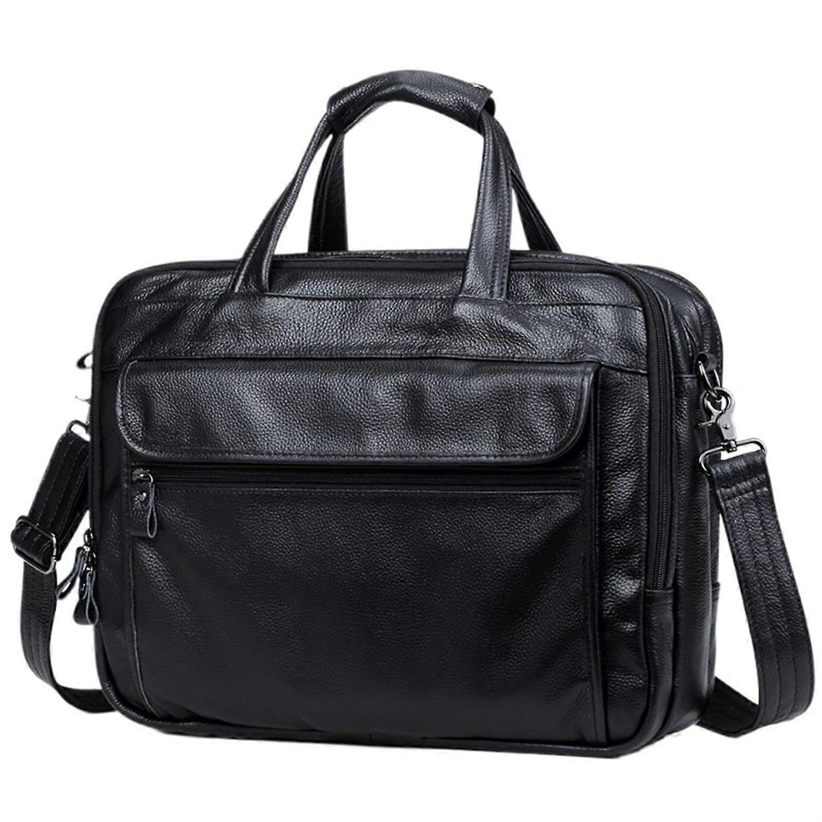 Men's Briefcase Genuine Leather A4 Office Bag 15.6-Inch Laptop Shoulder Tote Black Travel Bag