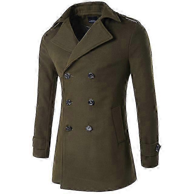 Men's Military Style Wool Blend Trench Coat with Long Sleeves for Spring and Autumn Weather Protection Overcoat