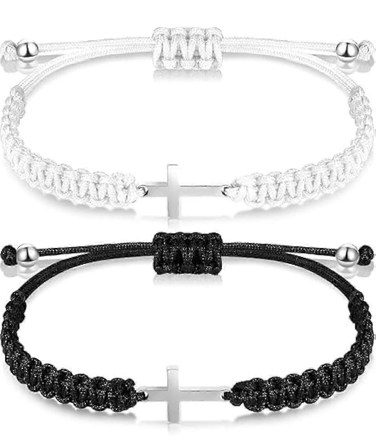 Men's 2-Piece Adjustable Stainless Steel Braided Rope Bracelet Set