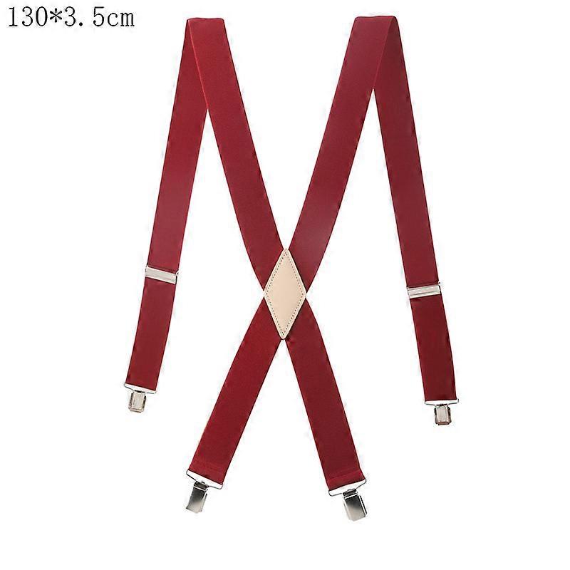 Men's 3.5cm Unisex Solid Straight Clip Rawhide Suspender Genuine Leather Brace 110cm 130cm Extended Size Vintage Groomsmen Gifts