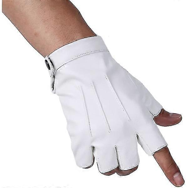 Men's PU Leather Punk Half Finger Gloves with Snap Fastener