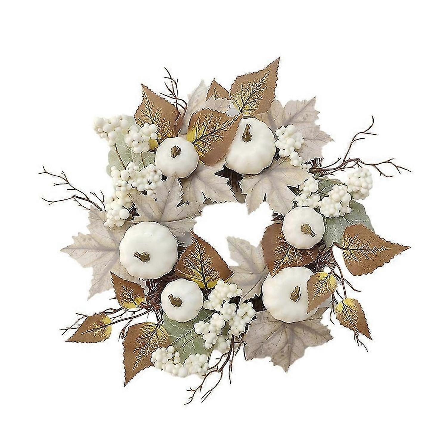 Maple Leaf Berry White Pumpkin Wreath Festival Decorative Ornament Pendant Farmhouse Front Door Wreath Decoration Wreath