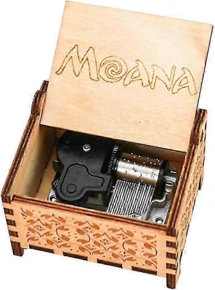 Moana Music Box 18 Note Windup Clockwork Mechanism Engraved Wood Music Box,play How Far I'll Go,brown