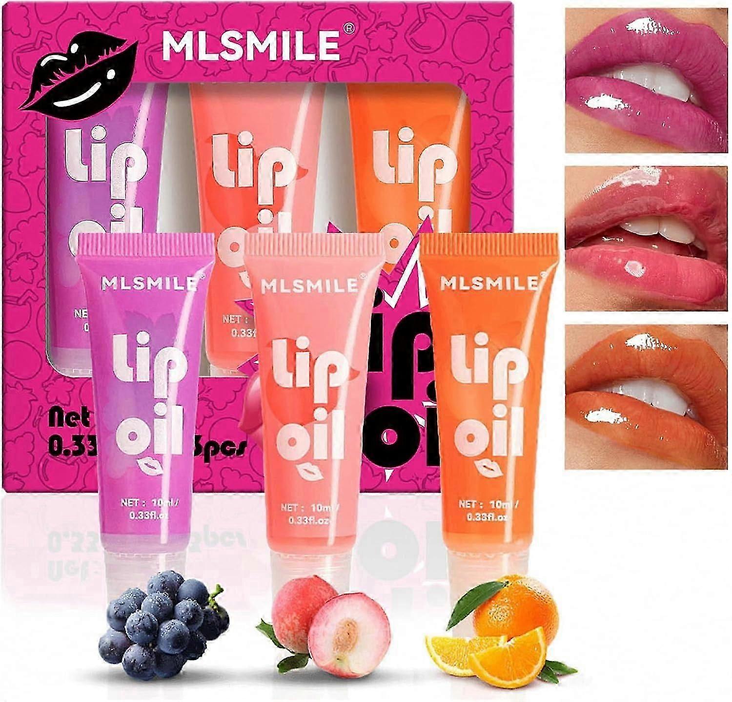 Moisturizing Lip Oil Set, 3Pcs Plumping Lip Gloss Set, Glitter Tinted Lip Gloss, Crystal Jelly Liquid Lipstick Set for Teenage Girls & Women