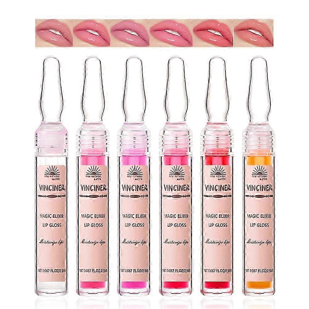 Moisturizing Lip Gloss Set 6pcsNon-Sticky Transparent Lip Glow Oil, Long Lasting Hydrating Lip Oil for Girls