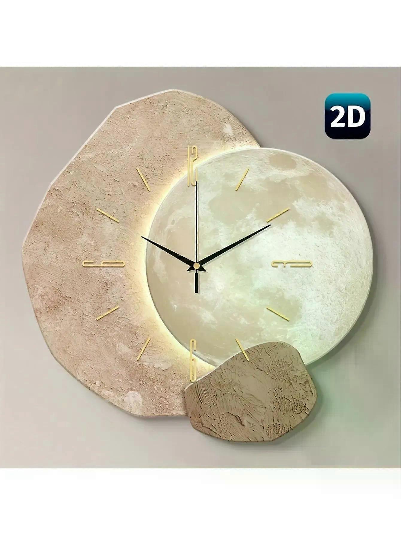 Modern Simple Silent Wall Clock Moon Phase Design - Quiet Quartz Movement Wooden Material Non-Drip Sound Perfect for Bedroom Living Room or Office Dec