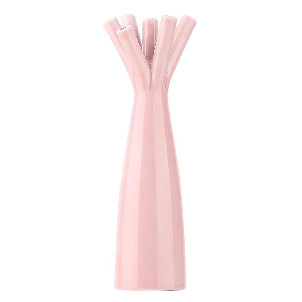 Modern Simple Striped Textured High Grade Ceramic Desk Flower Plants Jardiniere Vase(Pink)